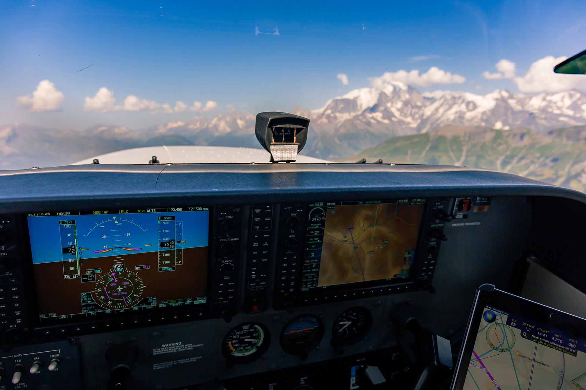 I planned our route the night before departure. Our flight back home would take us through the valleys of the alps and then along the famous Mont-Blanc, before crossing lake Geneva later on.